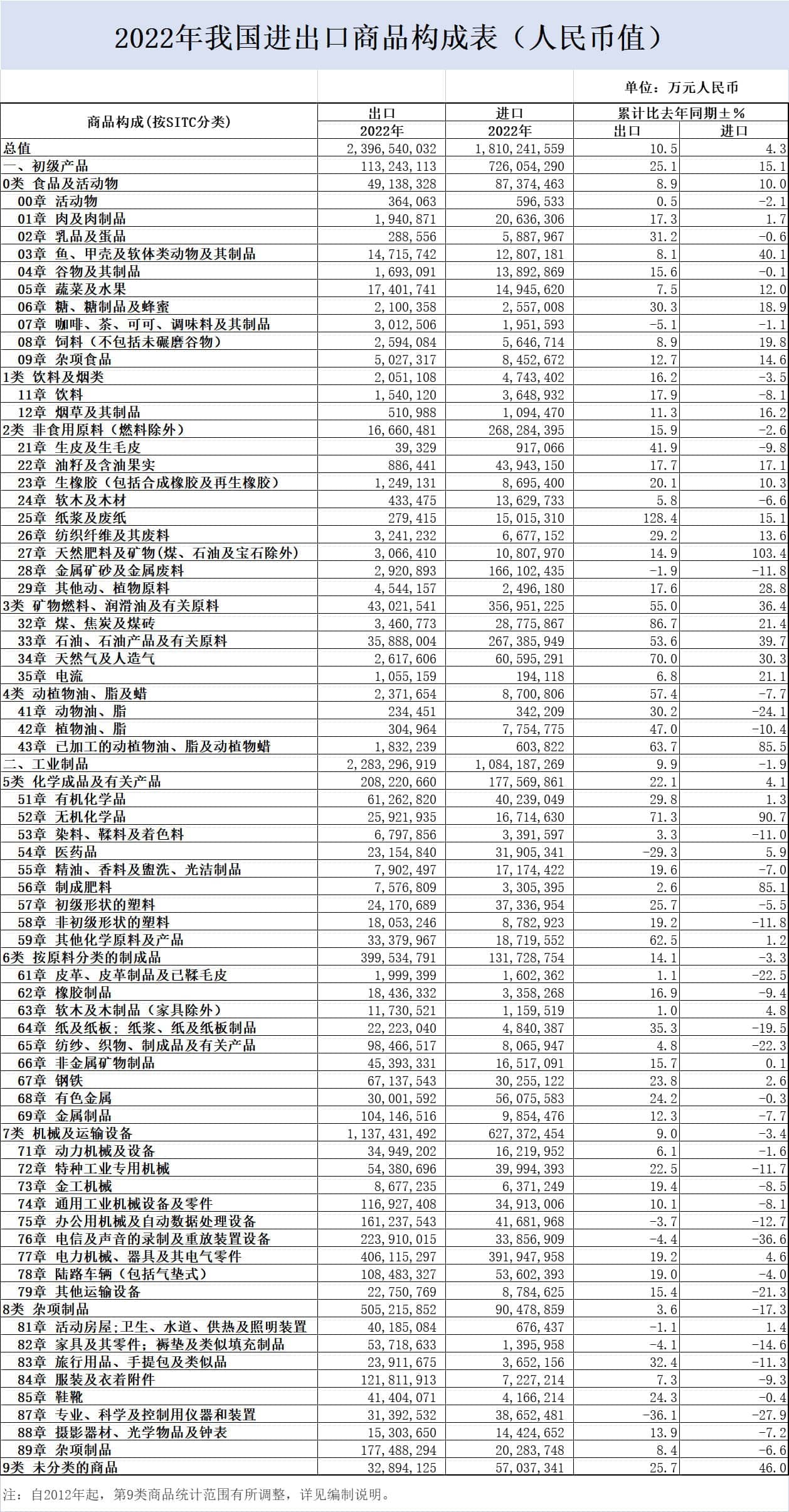 外貿(mào)市場回暖并不如預(yù)期,我國出口產(chǎn)品也受到波及。2022年我國出口商品最多的是“工業(yè)制品”。其中,機械及運輸設(shè)備出口22.8萬億元、雜項制品出口5.1萬億元、按原料分類的制成品出口4萬億元、化學(xué)成品及有關(guān)產(chǎn)品出口2.1萬億元、食品及活動物出庫4914億元。