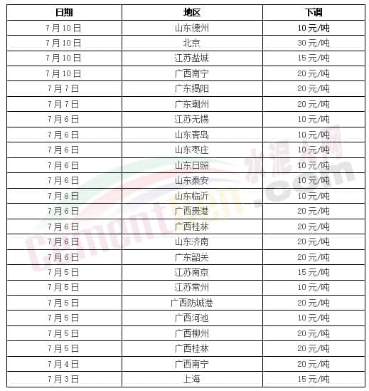 另據(jù)了解,進(jìn)入7月,山東、江蘇、廣東、廣西等多區(qū)域水泥市場仍處于下行趨勢,各企業(yè)報(bào)價低仍持續(xù)下跌中。