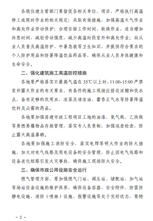 福建省住建廳要求嚴(yán)格落實(shí)日最高氣溫在35°C以上時(shí),11:00-15:00嚴(yán)禁室外露天作業(yè)的有關(guān)要求。