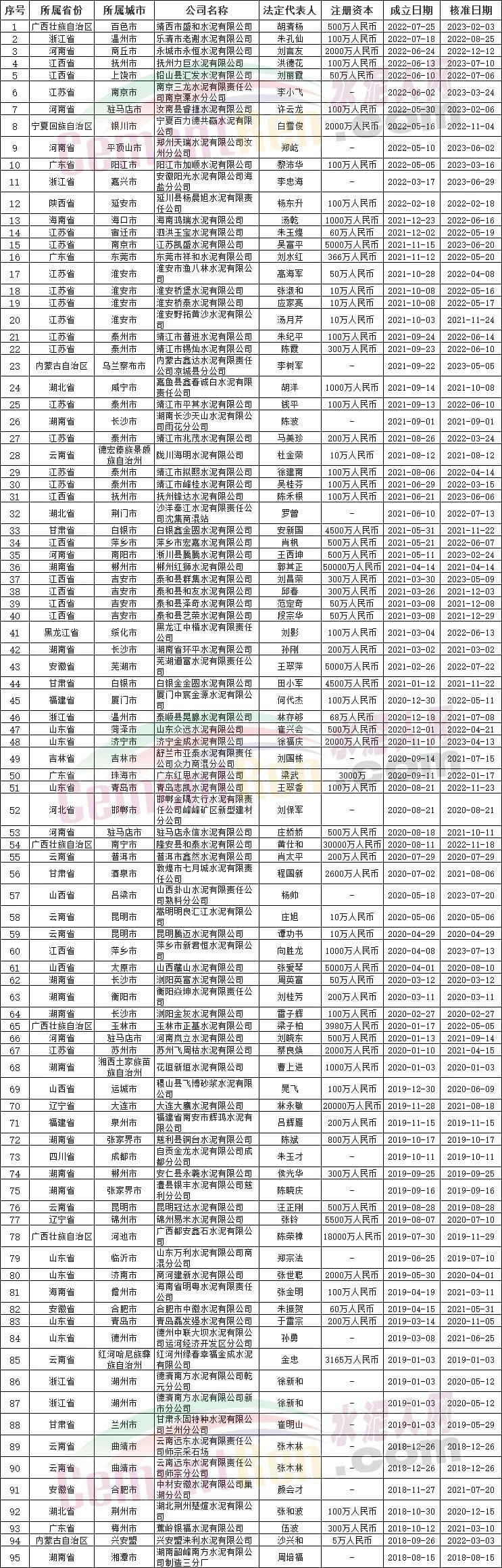 成立超過(guò)五年不足十年的水泥企業(yè)