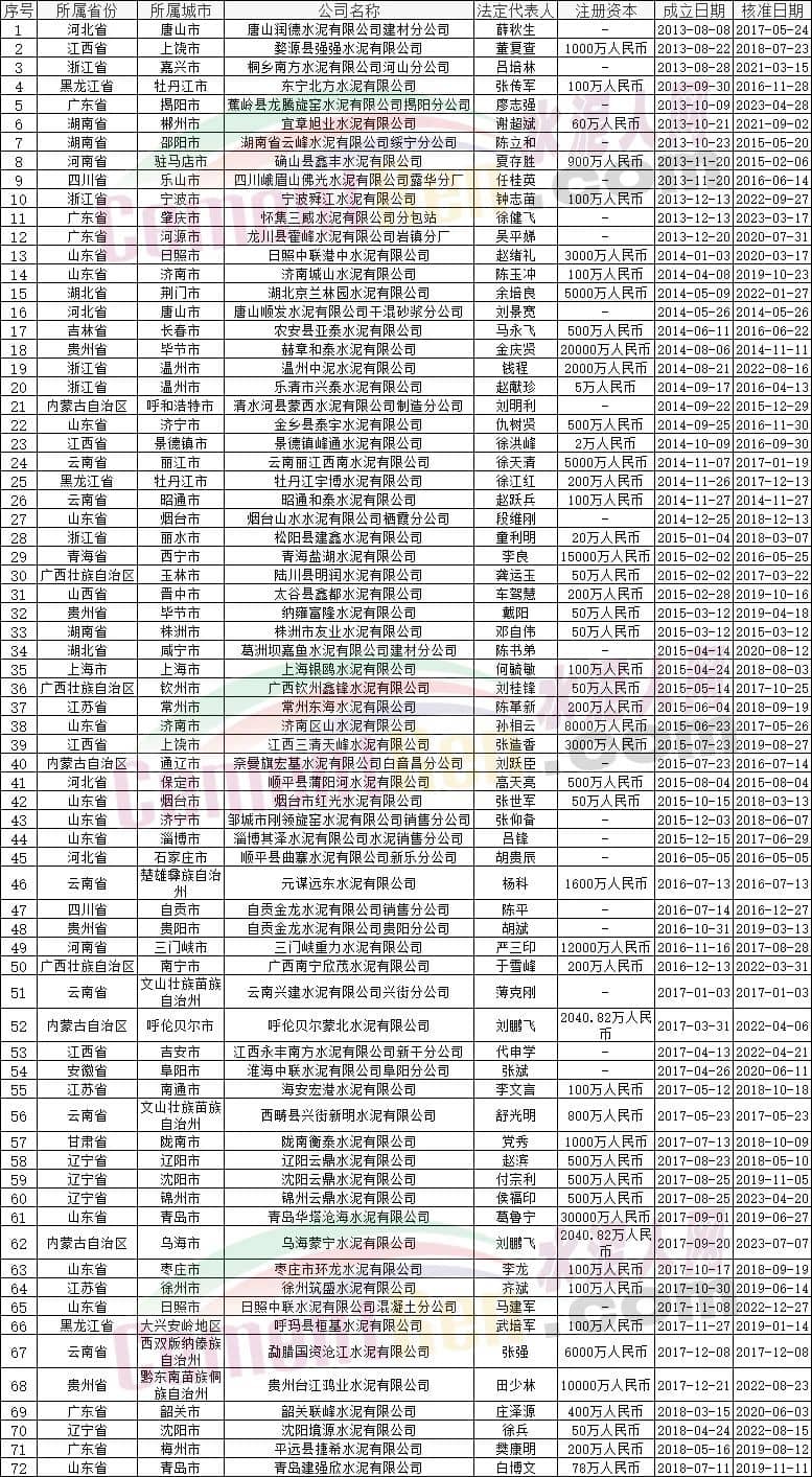 水泥人網(wǎng)注意到成立5年以上至10年內(nèi)注銷的企業(yè)名單中包含遼陽(yáng)云鼎水泥有限公司、沈陽(yáng)云鼎水泥有限公司、錦州云鼎水泥有限公司、呼倫貝爾蒙北水泥有限公司、烏海蒙寧水泥有限公司等區(qū)域聯(lián)合水泥公司。