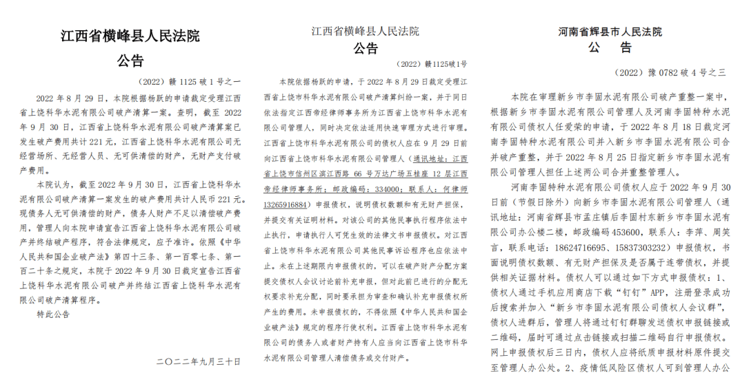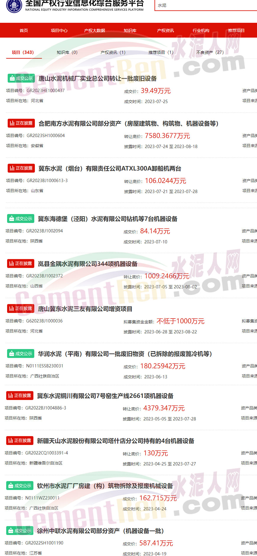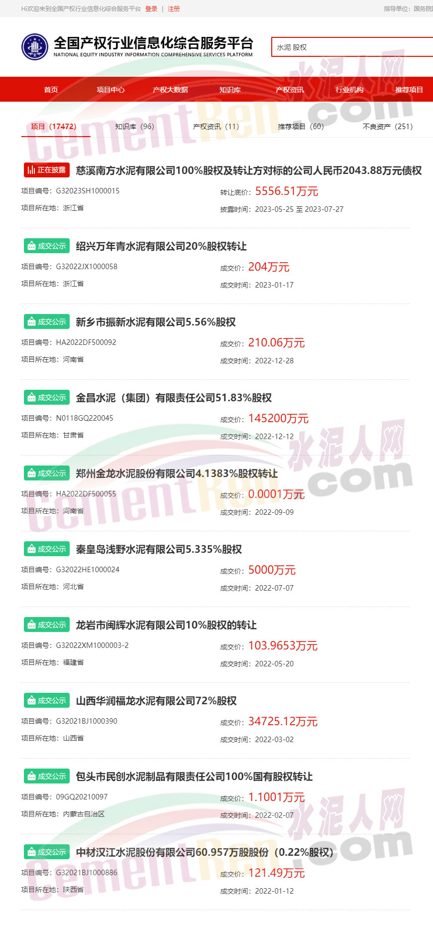 10家水泥企業(yè)出售股權(quán),106條資產(chǎn)出讓信息