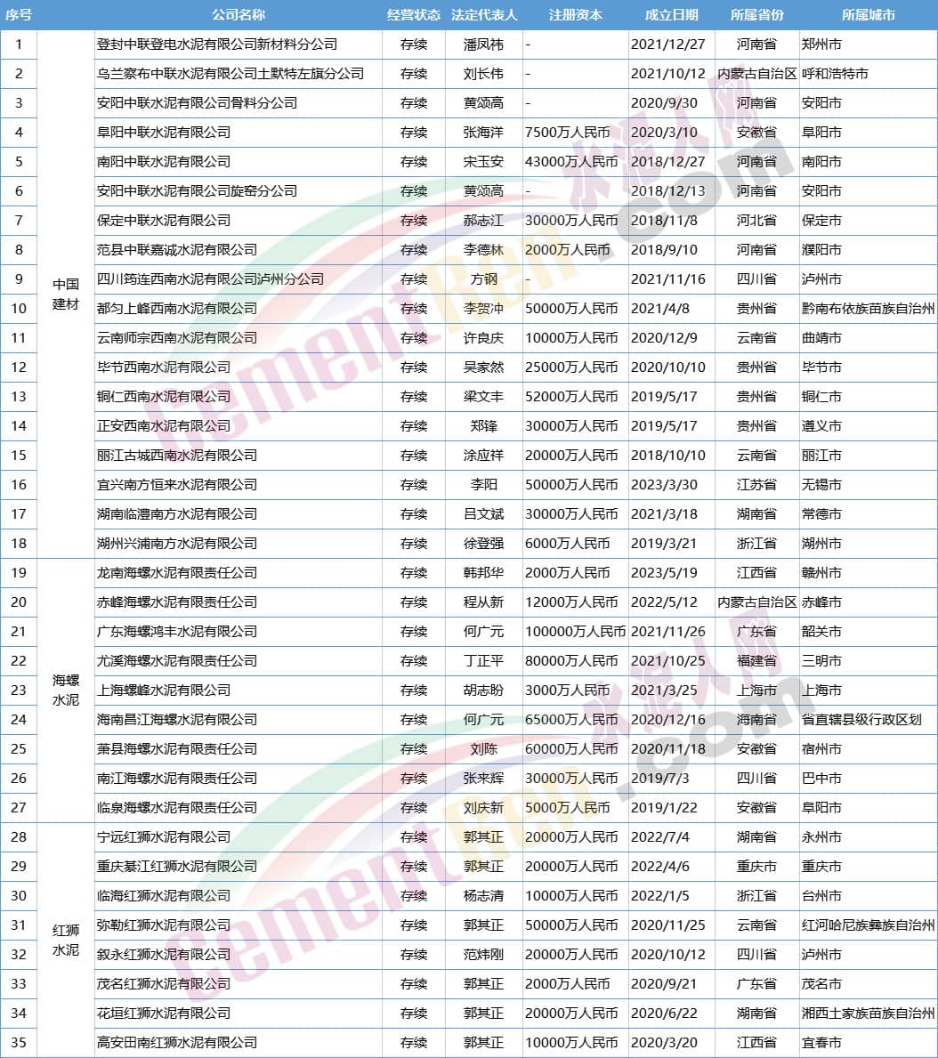大動(dòng)作!中建材、海螺、紅獅成立35家新公司!