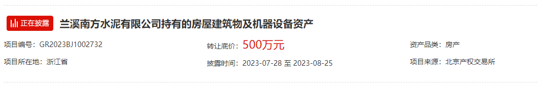 近期華南區(qū)域主要品牌企業(yè)發(fā)布公告,公開轉讓旗下一家水泥企業(yè)全部資產。資產包括土地、廠房和料庫等建筑構筑物,生產設備、設施和其相關備品配件,以及鐵路專用線(兩線軌道和相關基礎設施)等主要輔助性物資。