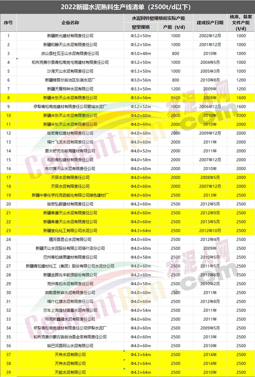截至目前,已有24個(gè)省市發(fā)布水泥熟料生產(chǎn)線清單,從各省市公布的熟料生產(chǎn)線清單可見(jiàn),除特種水泥生產(chǎn)線外在產(chǎn)2500t/d及以下熟料生產(chǎn)線共600多條,明確是利用電石渣生產(chǎn)熟料共20多條生產(chǎn)線。