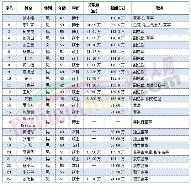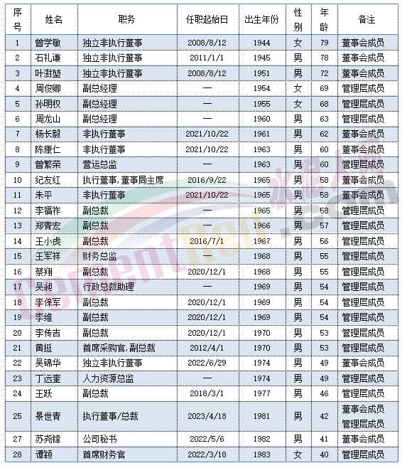 中國建材董事會成員及管理層成員中包括執(zhí)行總裁肖家祥,非執(zhí)行董事李新華在內(nèi)的多位高管年齡處于59-60歲之間。