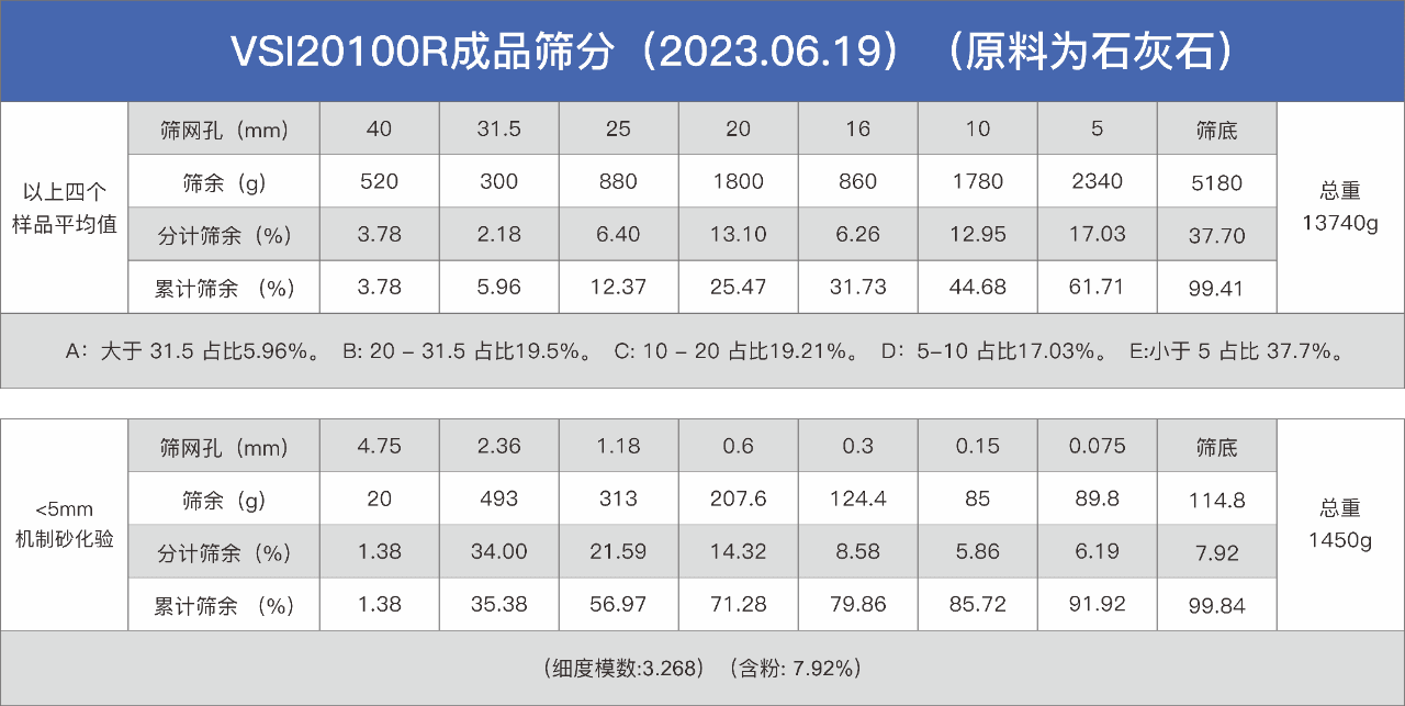 表:硬巖破碎成品的化驗結果