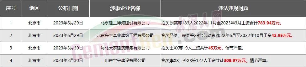 北京市4家房企、建企欠薪被通報(bào)或處罰,涉及金額1182.76萬(wàn)元