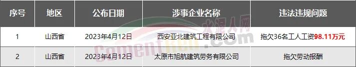 山西省2家房企、建企欠薪被通報(bào)或處罰,涉及金額98.11萬(wàn)元