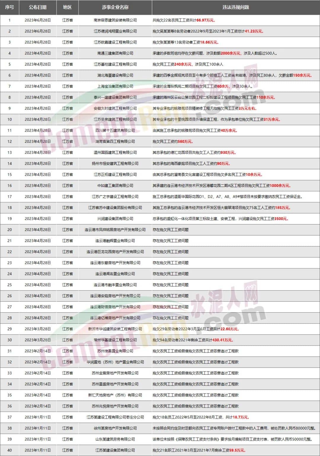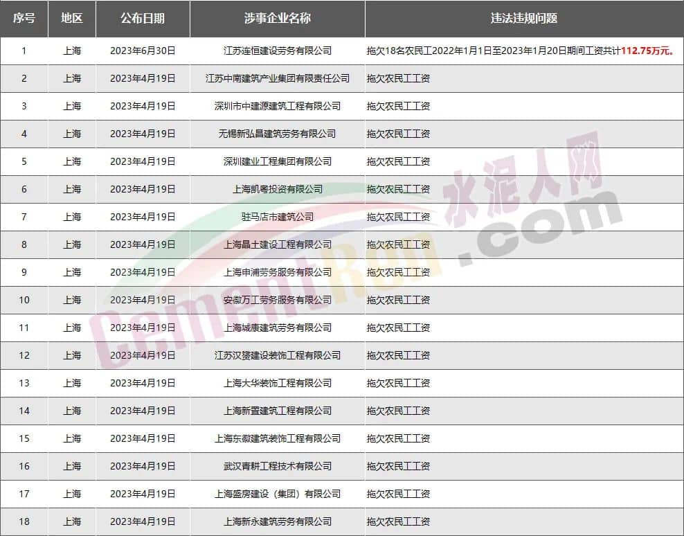 16家水泥企業(yè)欠薪超8348萬(wàn)元
