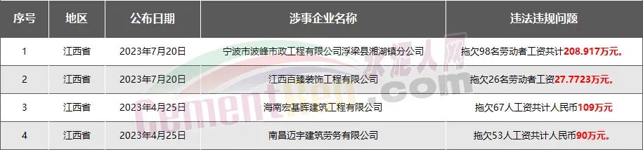 江西省4家房企、建企欠薪被通報(bào)或處罰,涉及金額435.68萬(wàn)元