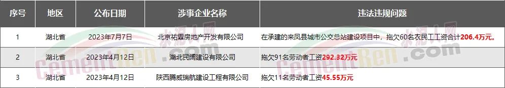 湖北省3家房企、建企欠薪被通報(bào)或處罰,涉及金額544.27萬(wàn)元
