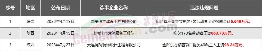 陜西省3家房企、建企欠薪被通報(bào)或處罰,涉及金額768.61萬(wàn)元