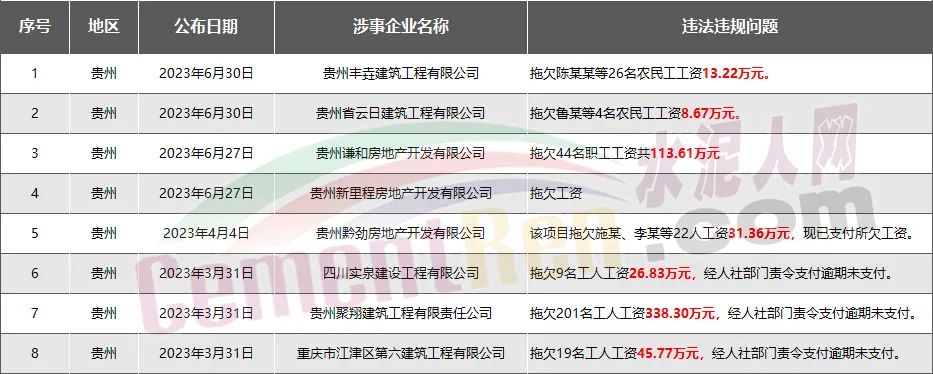 貴州省8家房企、建企欠薪被通報(bào)或處罰,涉及金額577.76萬(wàn)元