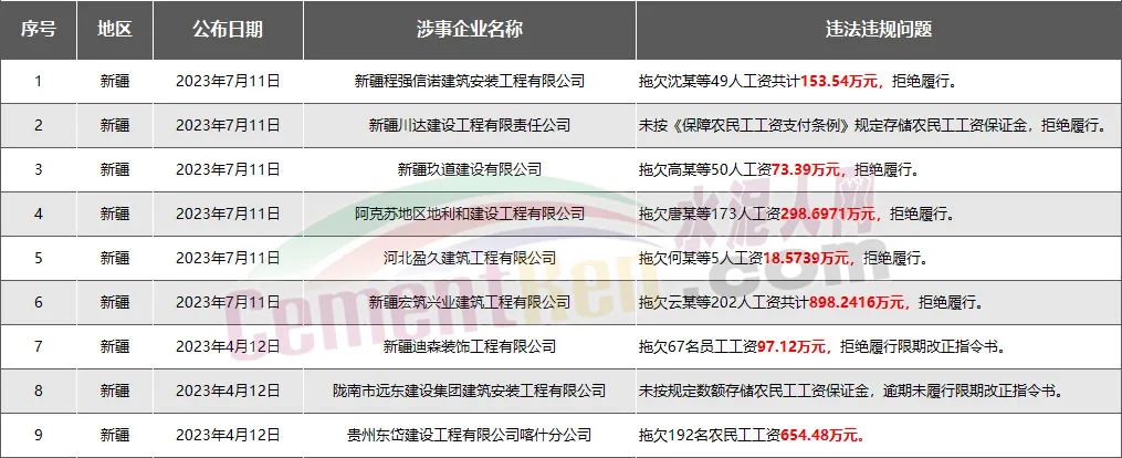 新疆9家房企、建企欠薪被通報(bào)或處罰,涉及金額2194萬(wàn)元