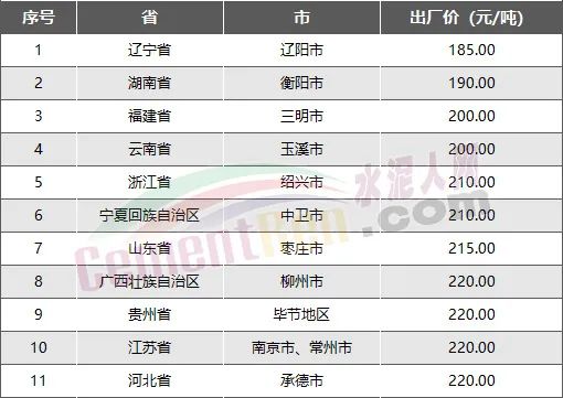 慘!水泥價格最低10大地區(qū)發(fā)布!