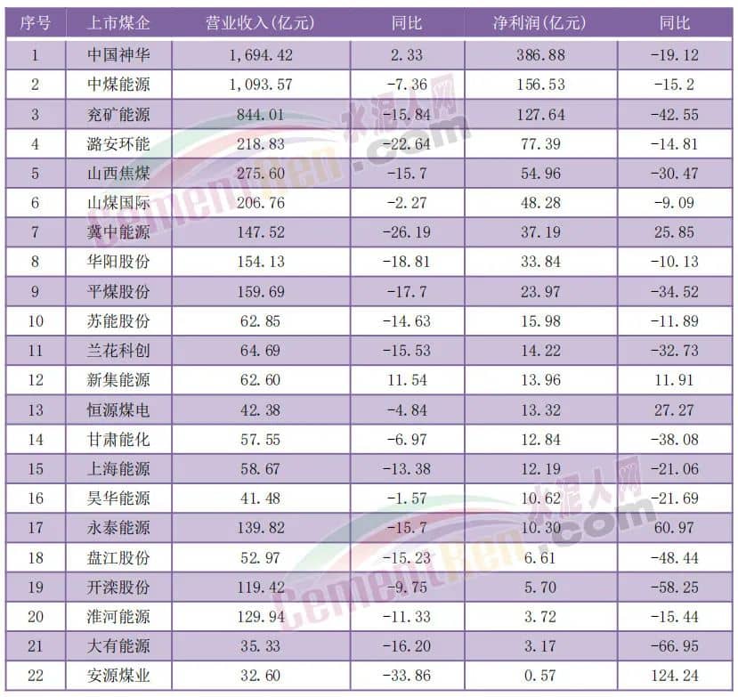 煤炭行業(yè)22家已發(fā)布半年報的企業(yè)中,僅有2家營收同比增長、5家凈利潤同比增長。包括還未發(fā)布半年報的陜西煤業(yè)在內(nèi),幾大煤炭行業(yè)龍頭業(yè)績普遍出現(xiàn)下滑。