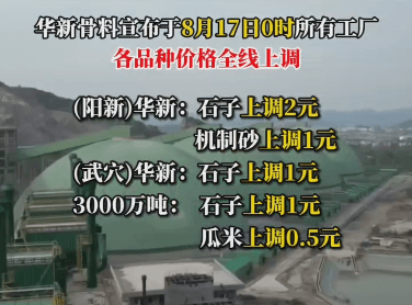 另?yè)?jù)市場(chǎng)反饋,華新骨料曾于8月17日0時(shí)上調(diào)所有工廠產(chǎn)品價(jià)格。
