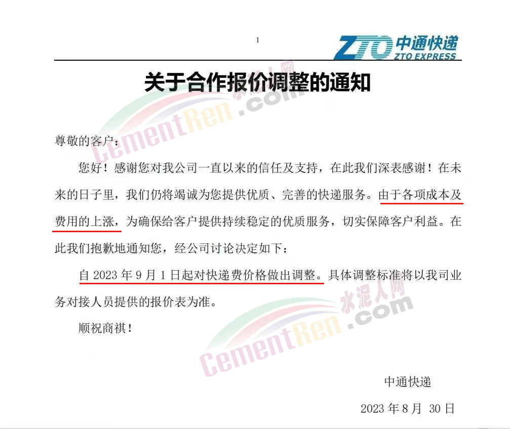 中通快遞通知,由于各項(xiàng)成本及費(fèi)用的上漲,為確保給客戶提供持續(xù)穩(wěn)定的優(yōu)質(zhì)服務(wù),切實(shí)保障客戶利益。經(jīng)公司討論決定自2023年9月1日起對(duì)快遞費(fèi)價(jià)格作出調(diào)整。