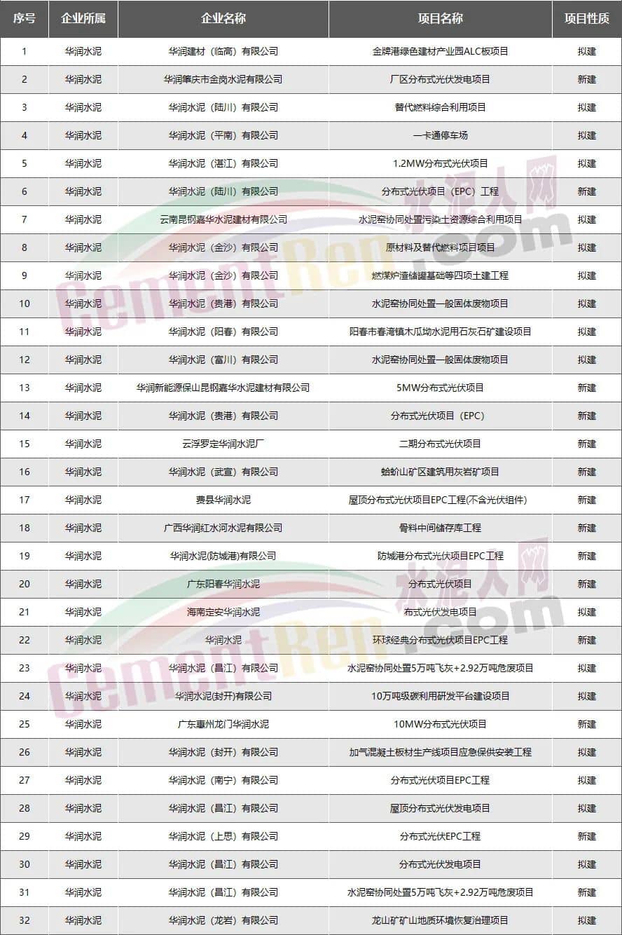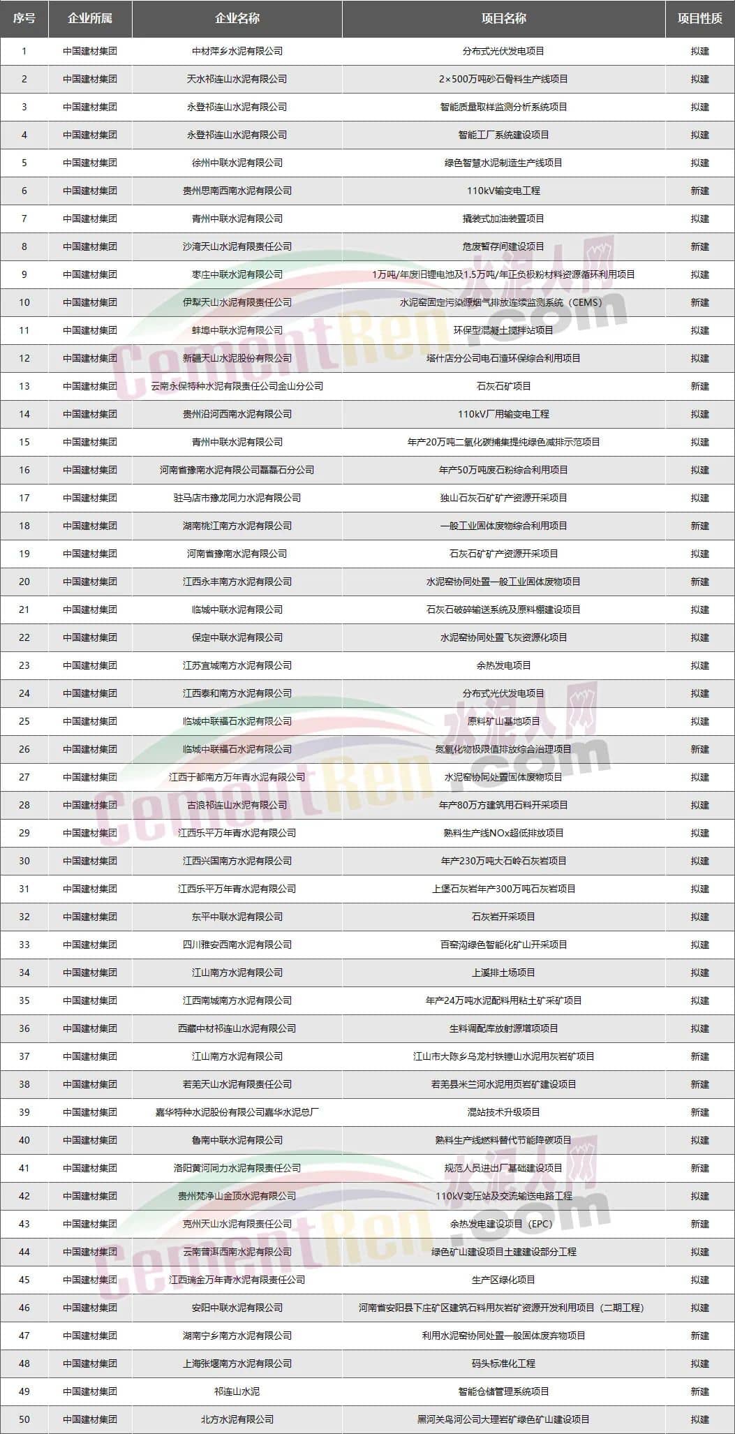 據(jù)水泥人網(wǎng)不完全統(tǒng)計,2023年下半年以來,中建材集團(tuán)、海螺水泥、華新水泥、華潤水泥、金隅集團(tuán)、紅獅控股集團(tuán)、山水水泥、臺泥水泥旗下共有304個新建擬建項目,其中光伏、骨料、混凝土、水泥窯協(xié)同處置、智能化相關(guān)項目居多。
