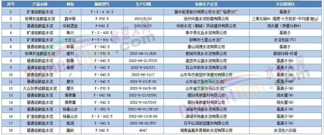 5月12日河北省市場監(jiān)管局通報,標稱生產(chǎn)企業(yè)為唐山豐潤區(qū)唐山潤德水泥有限公司生產(chǎn)的“碩磊”牌普通硅酸鹽水泥P.O42.5一個批次質(zhì)量不合格,不合格項目氯離子。