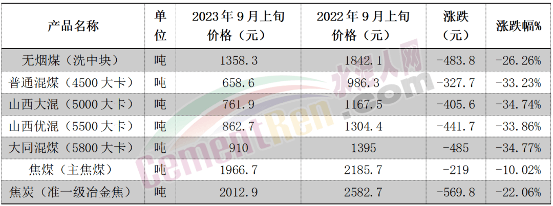 同比上年9月上旬?dāng)?shù)據(jù),4500大卡到5800大卡煤炭價格全部為下跌,其中5800大卡煤炭下跌達485元/噸。5000大卡煤炭下跌405.6元/噸。