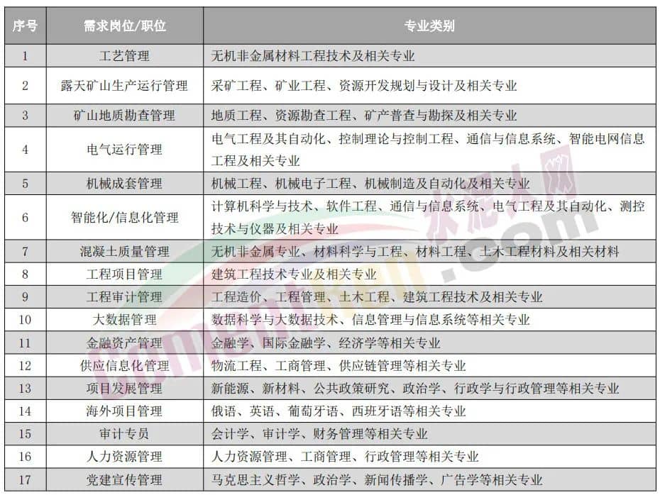 日前,安徽省大中專畢業(yè)生就業(yè)指導(dǎo)中心官網(wǎng)發(fā)布了《海螺水泥2024年秋季校園招聘簡章》招聘崗位包含工藝管理、露天礦山生產(chǎn)運(yùn)行管理、礦山地質(zhì)勘查管理、電氣運(yùn)行管理、機(jī)械成套管理、智能化/信息化管理、混凝土質(zhì)量管理、金融資產(chǎn)管理、供應(yīng)信息化管理、項(xiàng)目發(fā)展管理、海外項(xiàng)目管理等多個(gè)崗位。