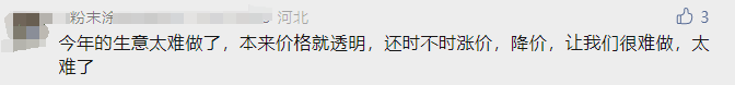 對(duì)于各種大宗商品漲價(jià)以及各種“不平等”的要求,部分網(wǎng)友也坐不住了,直呼太難了,本來價(jià)格就透明,還時(shí)不時(shí)漲價(jià),真是生意難做。