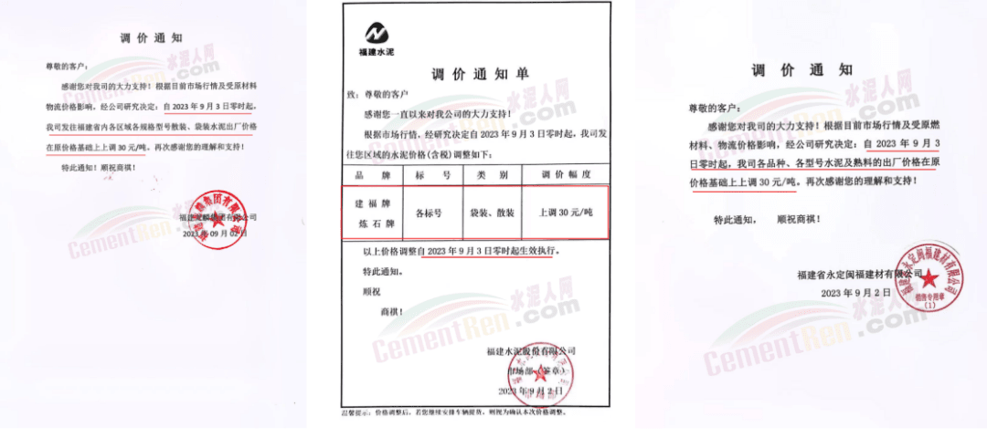 9月3日,占福建省熟料產(chǎn)能近60%,前五強(qiáng)的華潤(rùn)水泥、福建水泥、紅獅水泥、金牛水泥、龍麟集團(tuán)等10多家企業(yè)陸續(xù)通知全省熟料及各品種水泥價(jià)格上調(diào)30元/噸。