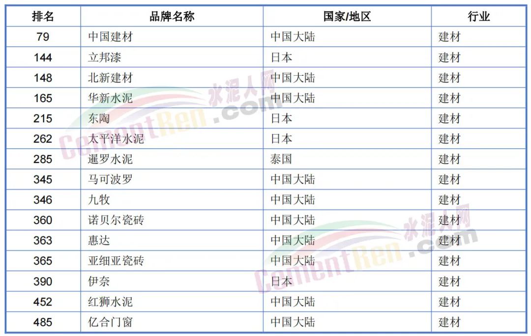 2023年亞洲500強(qiáng)榜單水泥建材行業(yè)