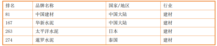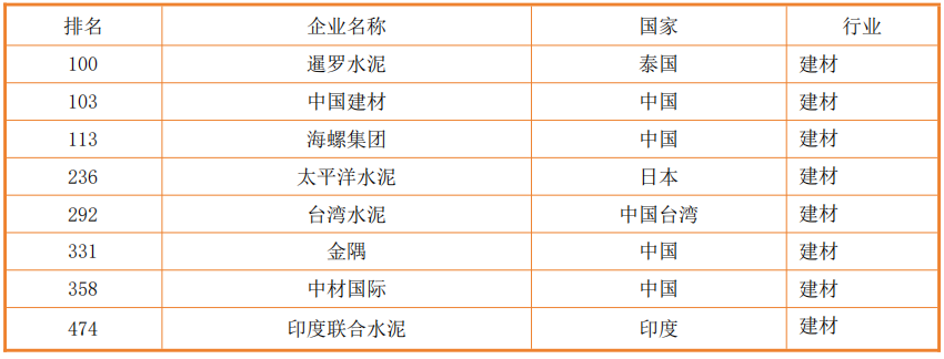 2021年亞洲500強(qiáng)榜單水泥建材行業(yè)