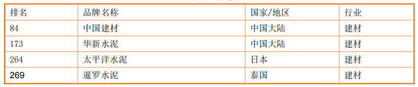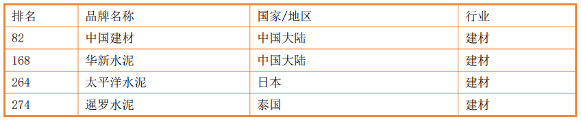 2017年亞洲500強(qiáng)榜單水泥建材行業(yè)