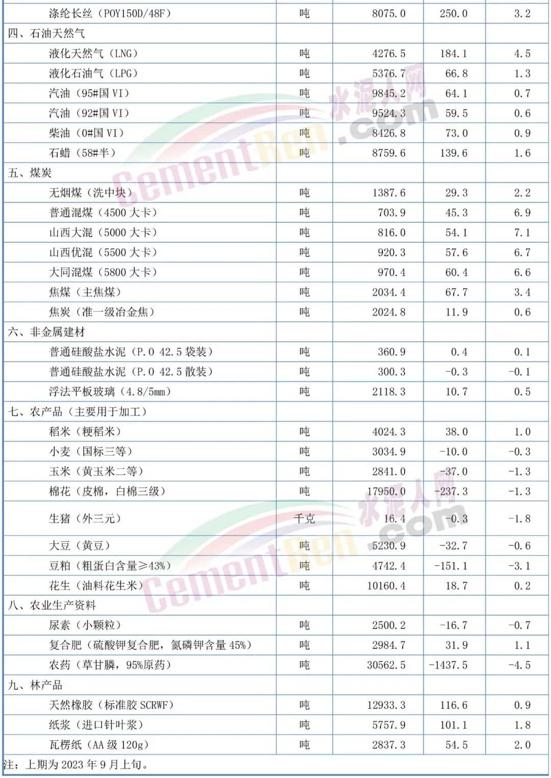 2023年9月中旬流通領(lǐng)域重要生產(chǎn)資料市場(chǎng)價(jià)格變動(dòng)情況