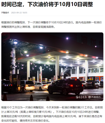 綜合此前消息,成品油已經(jīng)經(jīng)歷了“六連漲”,即將迎來2023年內(nèi)的“第十一漲”。全年累計(jì)漲超350元/噸,廣東、廣西、四川、云南等部分地區(qū)95號(hào)汽油即將進(jìn)入“9元時(shí)代”。