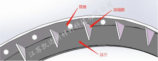 采用法蘭改造方案,在法蘭與筒壁之間加強(qiáng)筋法蘭邊緣與筒壁焊接,確保新舊法蘭之間安裝水平度,符合整體內(nèi)筒安裝的質(zhì)量要求,保證內(nèi)筒使用的穩(wěn)定性。