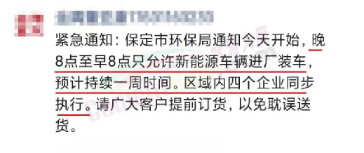 與此同時,河北保定區(qū)域某水泥企業(yè)通知,禁止非新能源車進廠。