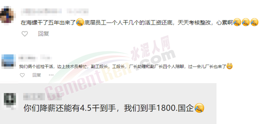 安徽某大型水泥廠員工表示,一個(gè)月五場(chǎng)考試,80分及格,其中兩場(chǎng)不及格就是待崗。2023年的月薪本就不如2000年的高,還動(dòng)不動(dòng)被考核,一線職工一個(gè)月到手才3000多。另一家福建國(guó)企員工表示,到手只有1800元……