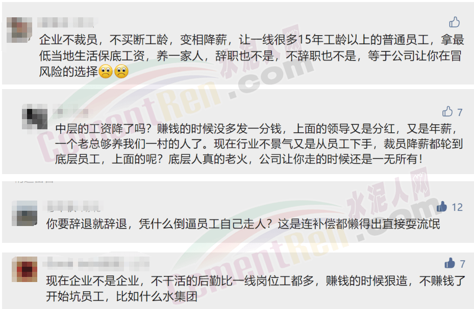 降薪、考核,取消各類獎(jiǎng)金、福利、補(bǔ)貼已經(jīng)不只是個(gè)別企業(yè),而是大多數(shù)企業(yè)的普遍做法了。不僅如此,如塔牌水泥,關(guān)閉兩家粉磨站出清低效產(chǎn)能,員工全部解除合同在水泥行業(yè)也不在少數(shù)。每天都有水泥企業(yè)生產(chǎn)線、設(shè)備、股權(quán)登上拍賣平臺(tái),也意味著每天都有一眾水泥人解除合同失去工作或正在失去工作的路上。