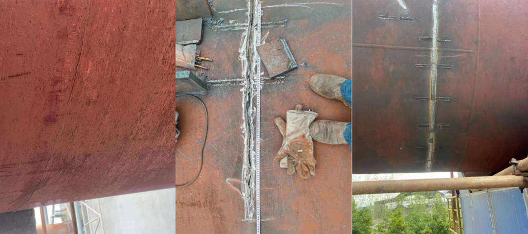 另外,擋磚圈前一環(huán)是300mm鎂鋁尖晶石加工磚,加工磚的切割尺寸很難控制,為了便于施工,往往會(huì)多切。從窯筒體磨損的情況來(lái)看,就是這部分擋磚圈與前一環(huán)磚的軸向間距較大,空隙寬。生料粉與窯筒體直接接觸,持續(xù)沖刷,最終磨出V型溝槽。盡管采取了緊急修復(fù),加筋處理,但仍存在一定再裂的風(fēng)險(xiǎn)。對(duì)此,設(shè)備企業(yè)窯筒體修復(fù)工程師給出三條建議: