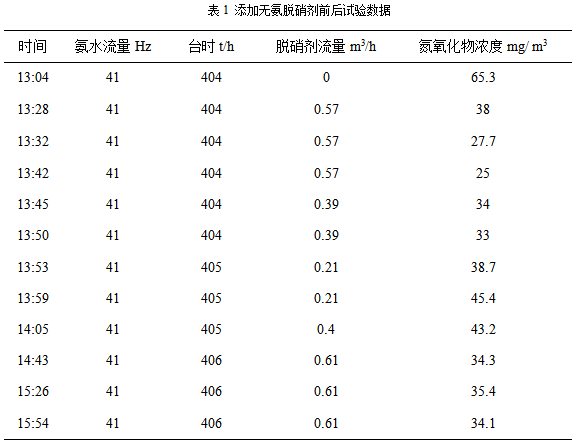 通過江蘇某水泥有限公司4500t/d生產(chǎn)線無氨脫硝劑的工業(yè)應(yīng)用試驗(yàn)研究,結(jié)果發(fā)現(xiàn):
