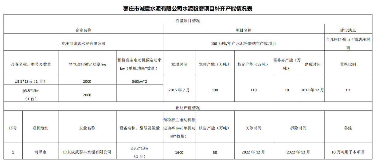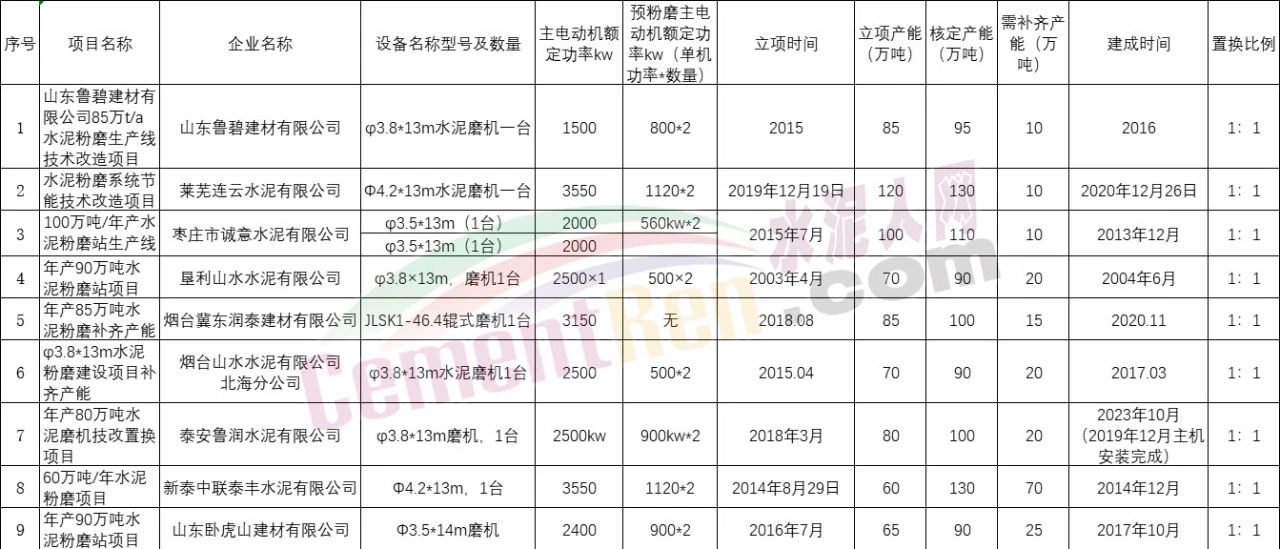 水泥人網(wǎng)注意到9個(gè)存量項(xiàng)目立項(xiàng)產(chǎn)能合計(jì)735萬噸/年,核定產(chǎn)能合計(jì)935萬噸/年,14個(gè)退出項(xiàng)目即需補(bǔ)充產(chǎn)能合計(jì)200萬噸/年。建成時(shí)間從2014年至2023年,補(bǔ)齊產(chǎn)能置換比例1:1。