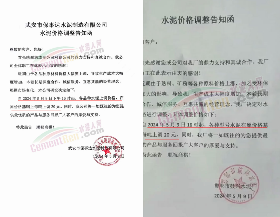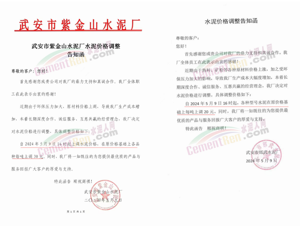 同期遼寧、吉林、黑龍江、河北、河南、重慶等多地水泥企業(yè)通知上調(diào)水泥價格30-50元/噸。