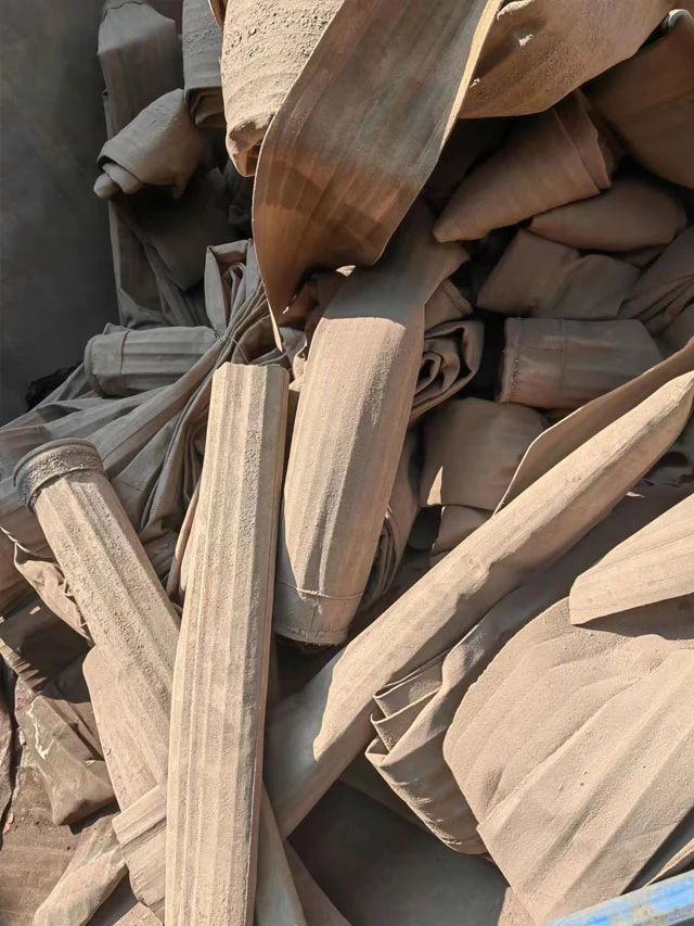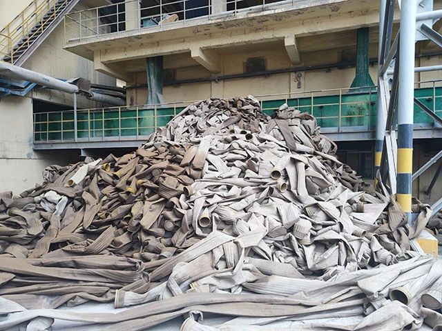 水泥廠、電廠、鋼廠換下來的廢舊濾袋,按類別進(jìn)行整理和存放,以便于更好地回收利用,變現(xiàn)換錢。