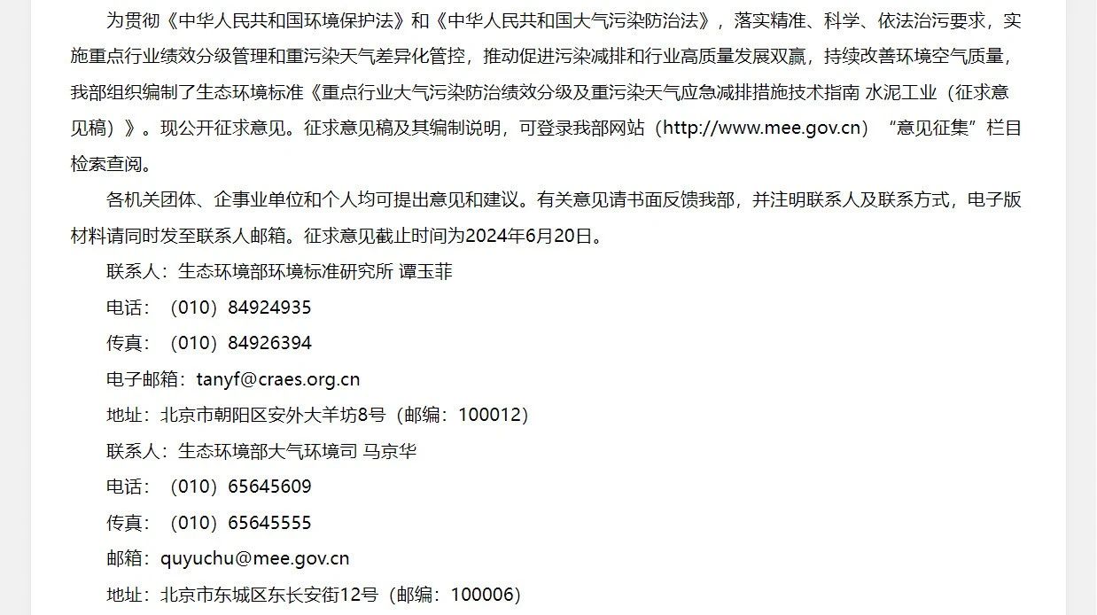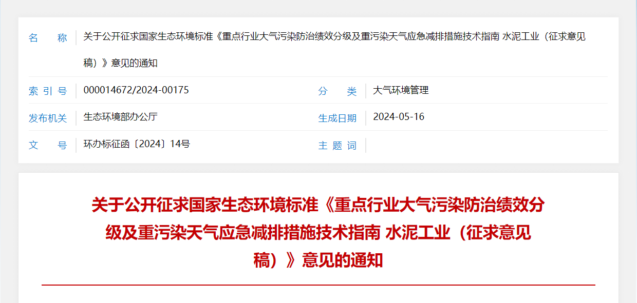 5月16日,生態(tài)環(huán)境部辦公廳發(fā)布關(guān)于公開征求國家生態(tài)環(huán)境標(biāo)準(zhǔn)《重點行業(yè)大氣污染防治績效分級及重污染天氣應(yīng)急減排措施技術(shù)指南水泥工業(yè)(征求意見稿)》意見的通知(以下簡稱“征求意見稿”)。