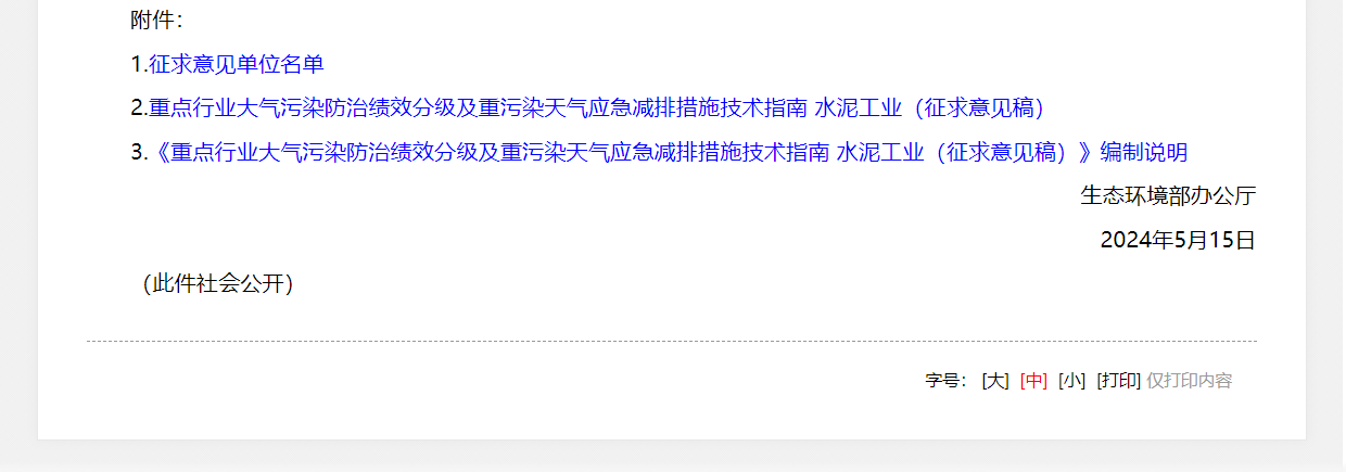 《關(guān)于推進實施水泥行業(yè)超低排放的意見》(環(huán)大氣〔2024〕5號)