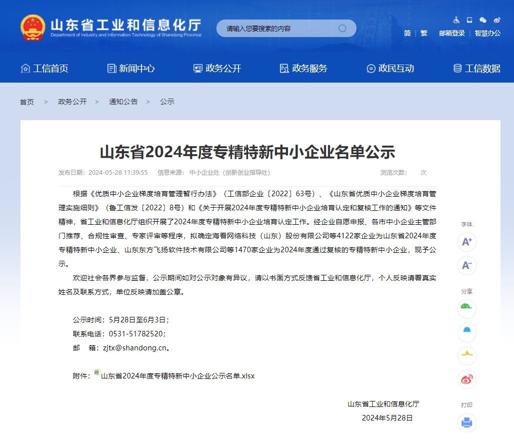 5月28日,山東省工業(yè)和信息化廳發(fā)布《山東省2024年度專精特新中小企業(yè)名單公示》,我縣23家企業(yè)入選山東省2024年度專精特新中小企業(yè),其中6家企業(yè)通過復核,新增17家,新認定數(shù)量較去年同期增加8家。