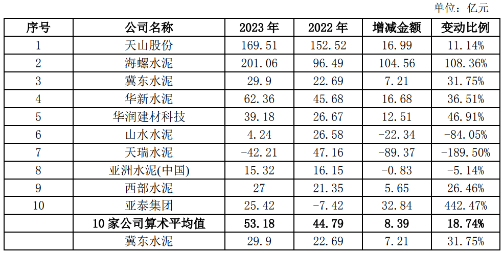 根據(jù)中國(guó)證監(jiān)會(huì)行業(yè)分類,公司屬于C30大類“非金屬礦物制品業(yè)”,其中,主營(yíng)業(yè)務(wù)包括水泥及熟料的A股、H股上市公司共計(jì)22家,選取2023年上市公司產(chǎn)能規(guī)模前10名(來源:數(shù)字水泥網(wǎng))水泥企業(yè)進(jìn)行對(duì)比,具體情況如下: