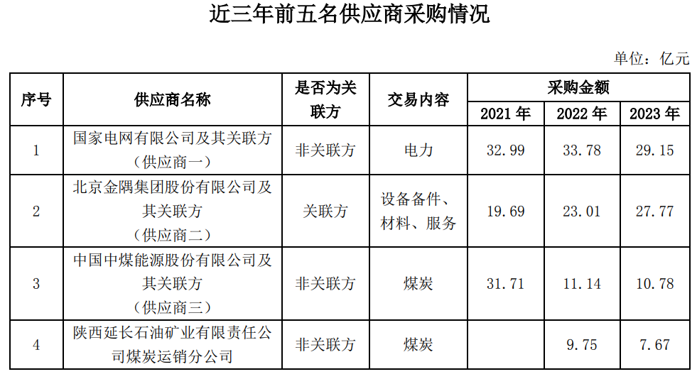2023年公司前五名供應(yīng)商中供應(yīng)商一為公司所屬企業(yè)生產(chǎn)經(jīng)營(yíng)中從企業(yè)所在地國(guó)家電網(wǎng)下屬企業(yè)購(gòu)買電力支出29.15億元,占年度采購(gòu)總額的11.70%;在我國(guó)電力作為國(guó)家的重要基礎(chǔ)設(shè)施和資源,其管理和運(yùn)營(yíng)是由國(guó)家電網(wǎng)進(jìn)行統(tǒng)一管理。