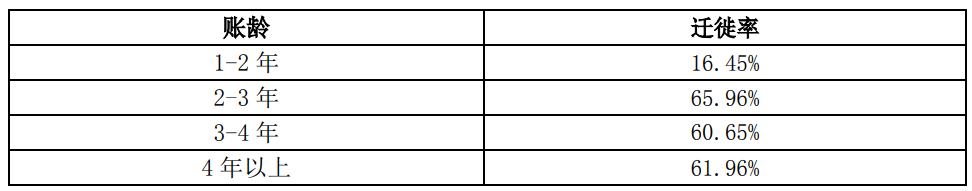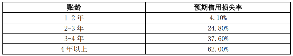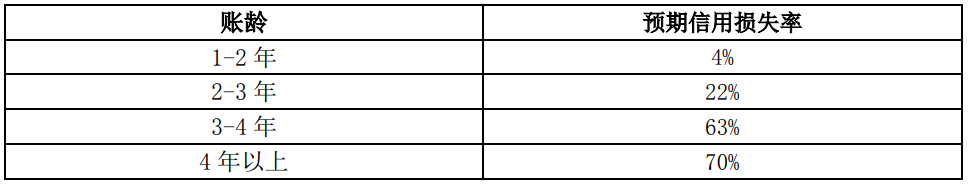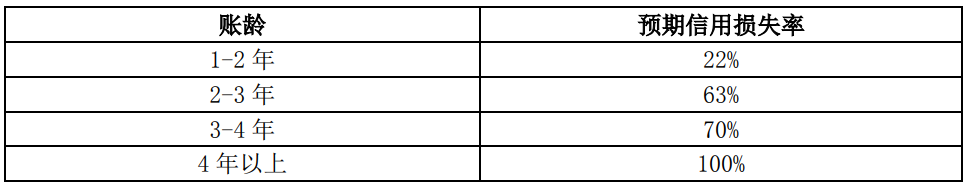1年以上壞賬計(jì)提比例確認(rèn)依據(jù)為以賬齡表為基礎(chǔ)的減值矩陣模型計(jì)算得出的預(yù)期信用損失率,是在賬齡分析法的基礎(chǔ)上利用遷徙率對(duì)歷史損失率進(jìn)行估計(jì),并在考慮前瞻信息后對(duì)信用損失進(jìn)行預(yù)測(cè)。
