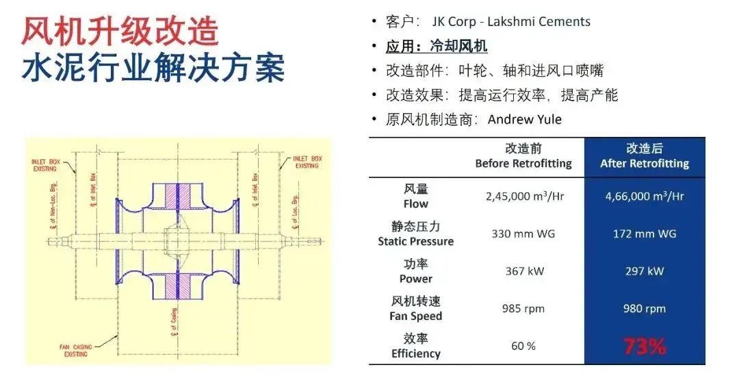 改造后,風(fēng)機(jī)工況效率常規(guī)可達(dá)85%